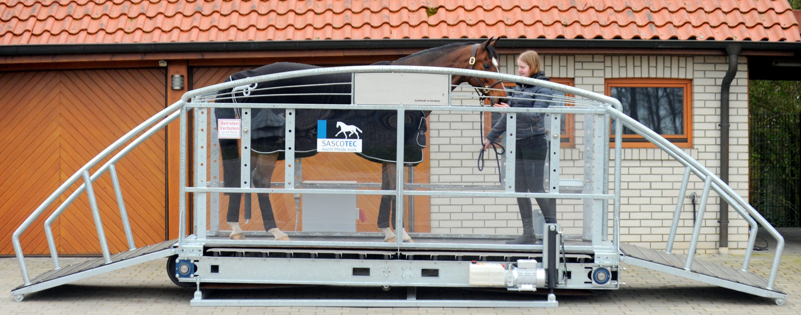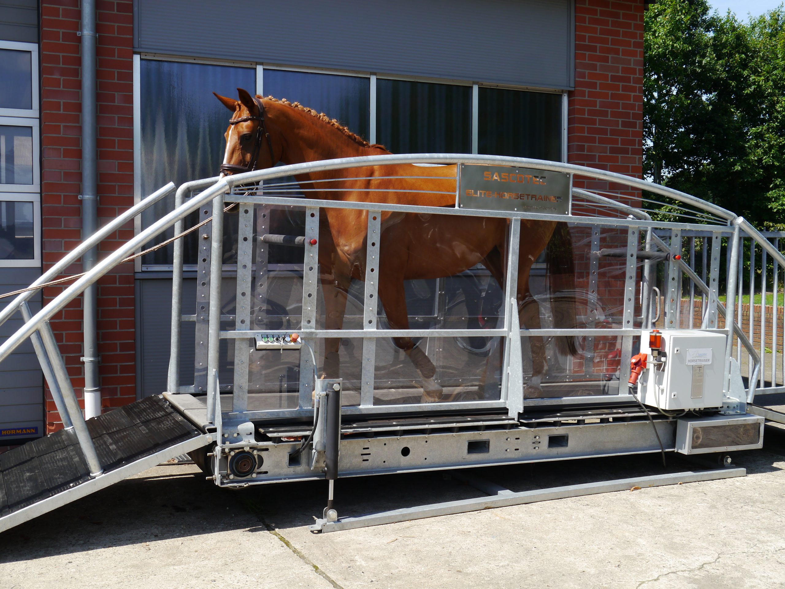 Für das fortgeschrittene Laufbandtraining im Profi- und Privatstall. Das Elite X25 ist das Trablaufband von Sascotec. Das stabile Pferdelaufband ist der ideale Partner für Kraft und Ausdauertraining auch im Trab. Zusätzlich erhältliche Bedienpanel mit Trainings- und Analyseprogrammen schaffen die perfekten Voraussetzungen für ein optimal angepasstes Trainingskonzept für Ihr Pferd.